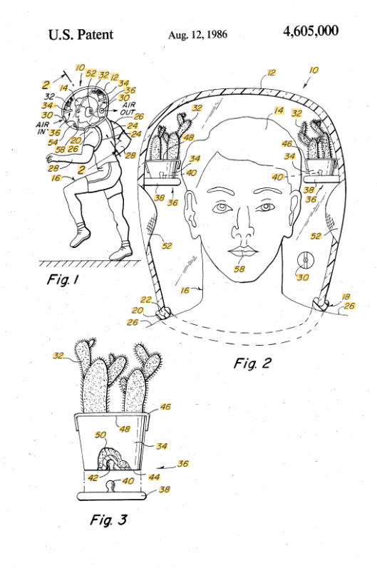 Finally, this last patent, US4605000A, does not have a mechanical spring. However, I had to include it because it allows you to take spring time with you, wherever you go. For your enjoyment, I present the Greenhouse Helmet.